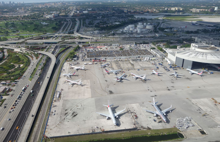 マイアミ空港とアメリカン航空機=15年6月10日 PHOTO: Tadayuki YOSHIKAWA/Aviation Wire