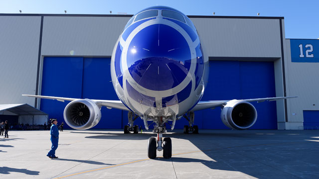 シアトルにあるボーイングのエバレット工場で開かれたロールアウト式典で姿を現したANAのR2-D2ジェット=9月12日 PHOTO: Tadayuki YOSHIKAWA/Aviation Wire