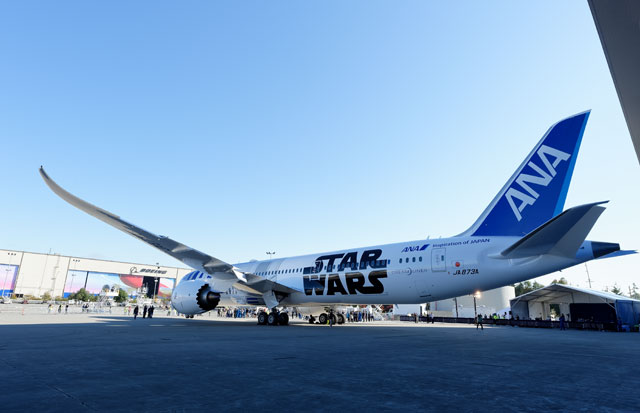 シアトルにあるボーイングのエバレット工場で開かれたロールアウト式典で姿を現したANAのR2-D2ジェット=9月12日 PHOTO: Tadayuki YOSHIKAWA/Aviation Wire