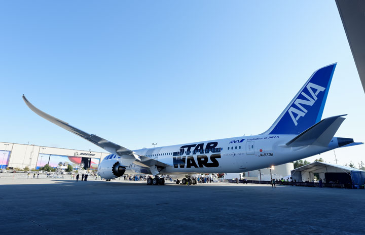 シアトルにあるボーイングのエバレット工場で開かれたロールアウト式典で姿を現したANAのR2-D2ジェット=9月12日 PHOTO: Tadayuki YOSHIKAWA/Aviation Wire