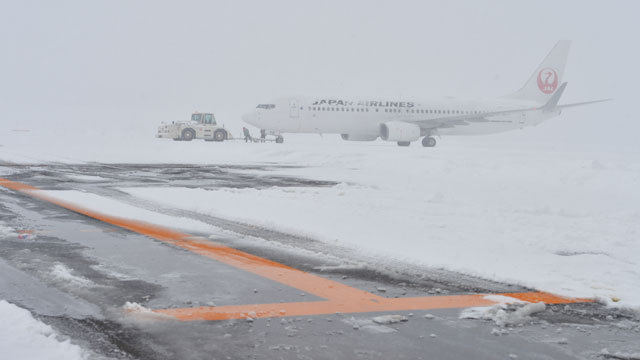 青森空港を出発するJALの737-800=16年1月21日 PHOTO: Tadayuki YOSHIKAWA/Aviation Wire