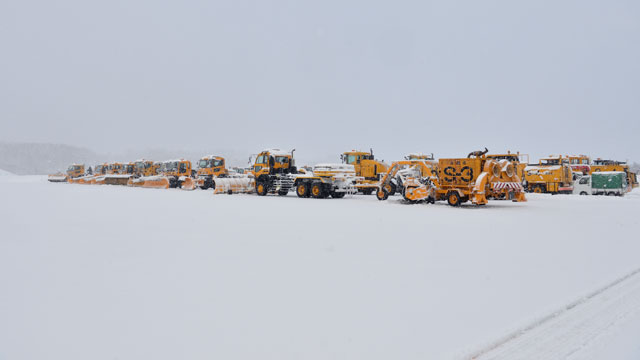 青森空港に並ぶホワイトインパルスの除雪車=16年1月21日 PHOTO: Tadayuki YOSHIKAWA/Aviation Wire