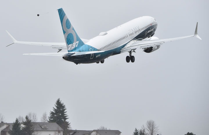 シアトルのレントン空港を離陸し初飛行する737 MAX 8初号機=16年1月29日 PHOTO: Tadayuki YOSHIKAWA/Aviation Wire