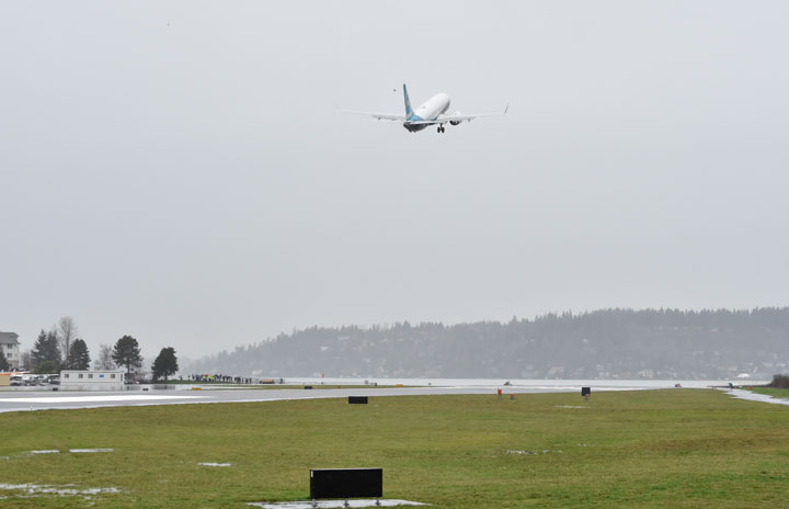 シアトルのレントン空港を離陸し初飛行する737 MAX 8初号機=16年1月29日 PHOTO: Tadayuki YOSHIKAWA/Aviation Wire