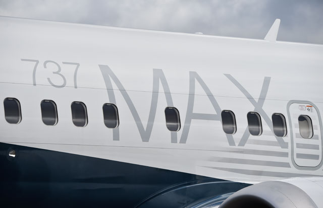 “737 MAX”と大きく描かれた737 MAX 8の飛行試験初号機=16年1月29日 PHOTO: Tadayuki YOSHIKAWA/Aviation Wire
