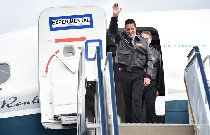 737 MAXの初飛行を成功させたボンベン機長(左)とウィルソン機長=16年1月29日 PHOTO: Tadayuki YOSHIKAWA/Aviation Wire
