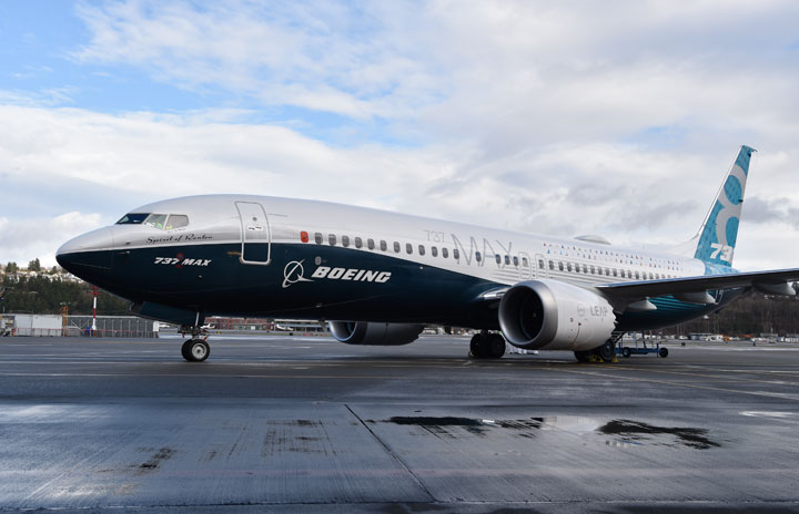 初飛行を終えた737 MAX 8の飛行試験初号機=16年1月29日 PHOTO: Tadayuki YOSHIKAWA/Aviation Wire