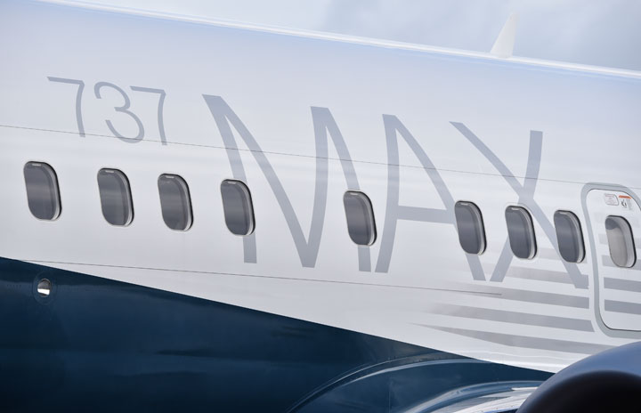 “737 MAX”と大きく描かれた737 MAX 8の飛行試験初号機=16年1月29日 PHOTO: Tadayuki YOSHIKAWA/Aviation Wire