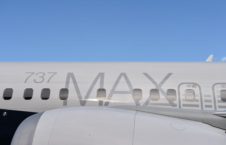 “737 MAX”と大きく描かれた737 MAX 8の飛行試験初号機=16年1月29日 PHOTO: Tadayuki YOSHIKAWA/Aviation Wire