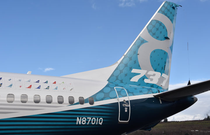 “8”と大きく描かれた737 MAX 8の飛行試験初号機=16年1月29日 PHOTO: Tadayuki YOSHIKAWA/Aviation Wire
