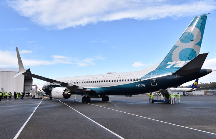 初飛行を終えた737 MAX 8の飛行試験初号機=16年1月29日 PHOTO: Tadayuki YOSHIKAWA/Aviation Wire