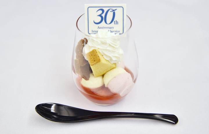 ファーストとビジネスクラスで提供したパフェ=16年3月3日 PHOTO: Tadayuki YOSHIKAWA/Aviation Wire