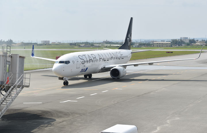 宮古空港へ到着するANAの羽田発初便=16年3月27日 PHOTO: Tadayuki YOSHIKAWA/Aviation Wire