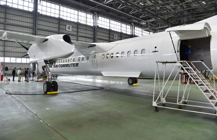 機体後部窓4カ所とドアにあたる部分を貨物室として拡張したRACのQ400CC=16年3月30日 PHOTO: Tadayuki YOSHIKAWA/Aviation Wire
