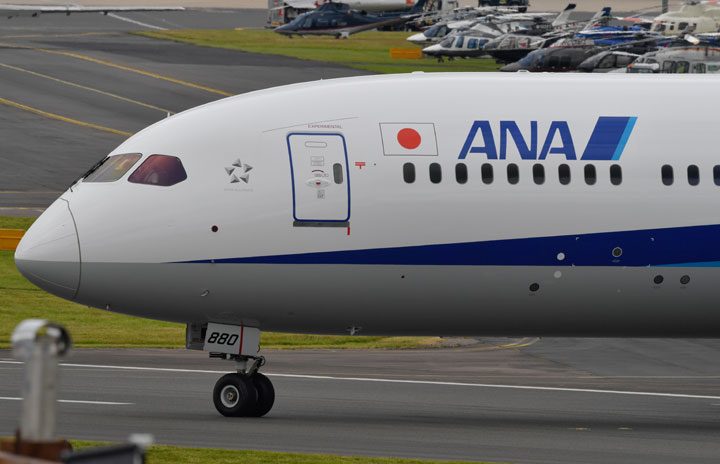 ファンボロー航空ショーで展示飛行に向かうANAの787-9=16年7月12日 PHOTO: Tadayuki YOSHIKAWA/Aviation Wire