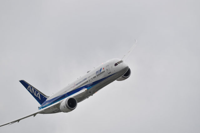 ファンボロー航空ショーで展示飛行するANAの787-9=16年7月12日 PHOTO: Tadayuki YOSHIKAWA/Aviation Wire