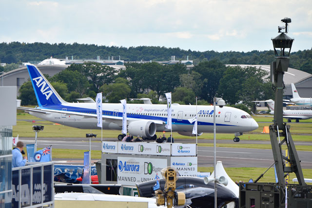 ファンボロー航空ショーで展示飛行を終えて着陸したANAの787-9=16年7月12日 PHOTO: Tadayuki YOSHIKAWA/Aviation Wire