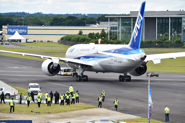 ファンボロー航空ショーで展示飛行を終えて地上展示する場所へ戻るANAの787-9=16年7月12日 PHOTO: Tadayuki YOSHIKAWA/Aviation Wire