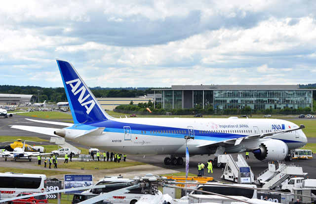 ファンボロー航空ショーで展示飛行を終えて地上展示する場所へ戻るANAの787-9=16年7月12日 PHOTO: Tadayuki YOSHIKAWA/Aviation Wire