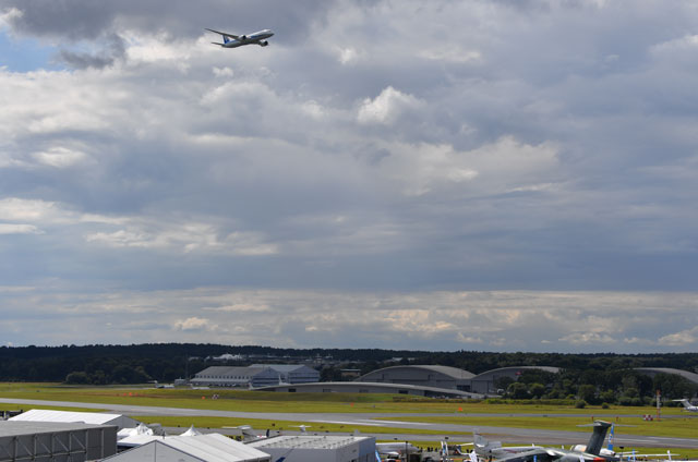 ファンボロー航空ショーの会場を通過するANAの787-9=16年7月13日 PHOTO: Tadayuki YOSHIKAWA/Aviation Wire