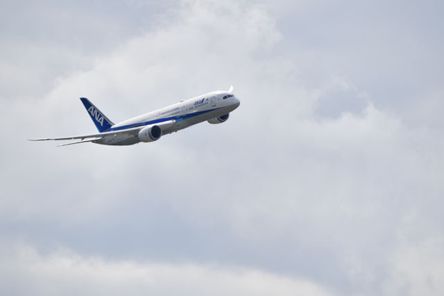 ファンボロー航空ショーで展示飛行するANAの787-9=16年7月13日 PHOTO: Tadayuki YOSHIKAWA/Aviation Wire