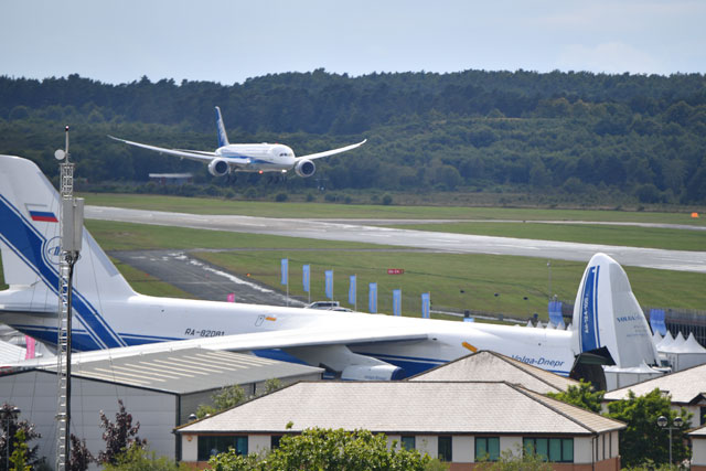 ファンボロー航空ショーで展示飛行を終えて着陸するANAの787-9=16年7月13日 PHOTO: Tadayuki YOSHIKAWA/Aviation Wire