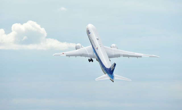 ファンボロー航空ショーで展示飛行に向けて急上昇するANAの787-9=16年7月13日 PHOTO: Tadayuki YOSHIKAWA/Aviation Wire
