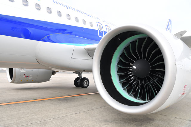 ANAのA320neo初号機のエンジンPW1100G-JM=16年12月26日 PHOTO: Tadayuki YOSHIKAWA/Aviation Wire