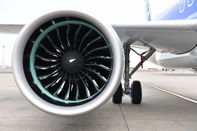 ANAのA320neo初号機のエンジンPW1100G-JM=16年12月26日 PHOTO: Tadayuki YOSHIKAWA/Aviation Wire