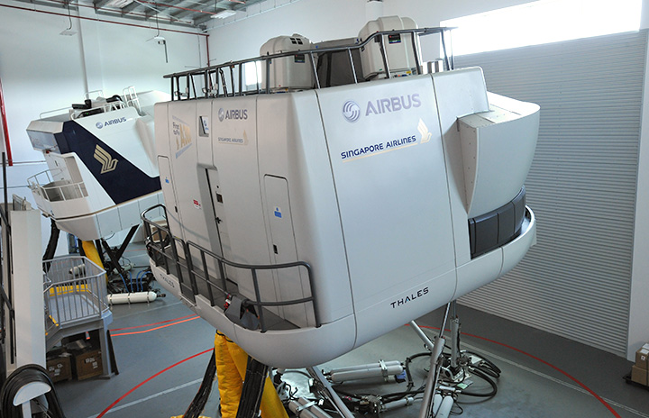 シンガポールのエアバス・アジア・トレーニング・センターに設置したA380のフルフライト・シミュレーター=17年2月10日 PHOTO: Yusuke KOHASE/Aviation Wire