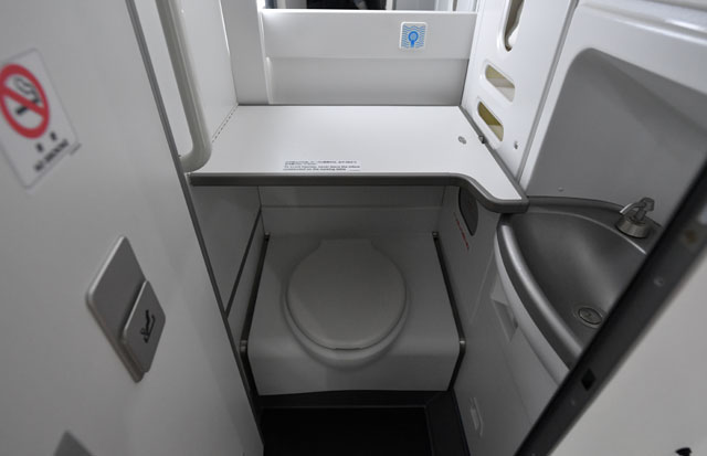 ラバトリーに設置された特注のおむつ台=17年3月10日 PHOTO: Tadayuki YOSHIKAWA/Aviation Wire