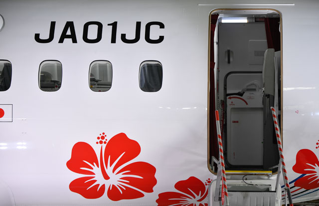 機体後部にハイビスカスを描いたJACのATR42初号機=17年3月10日 PHOTO: Tadayuki YOSHIKAWA/Aviation Wire