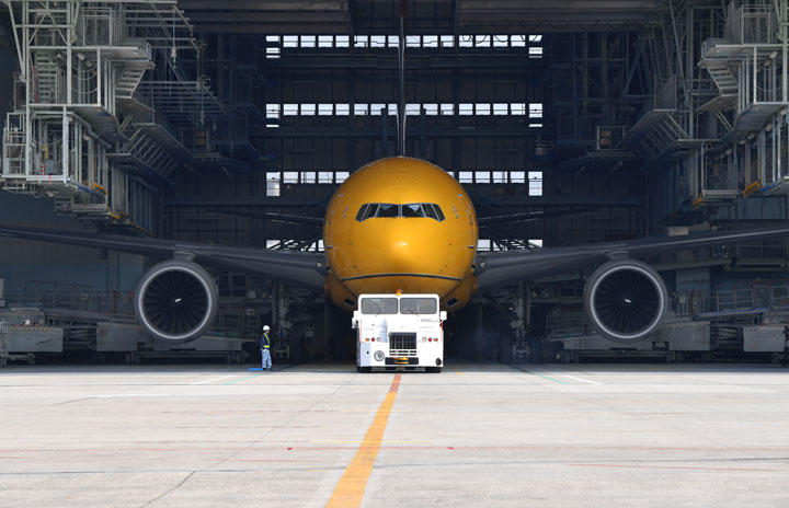 伊丹空港の格納庫でペイントロールアウトしたANAのC-3POジェット=17年3月19日 PHOTO: Tadayuki YOSHIKAWA/Aviation Wire