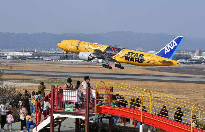 伊丹空港を離陸するANAのC-3POジェット=17年3月19日 PHOTO: Tadayuki YOSHIKAWA/Aviation Wire
