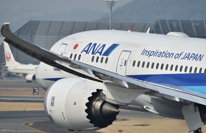 伊丹空港を離陸するANAの787=17年3月19日 PHOTO: Tadayuki YOSHIKAWA/Aviation Wire