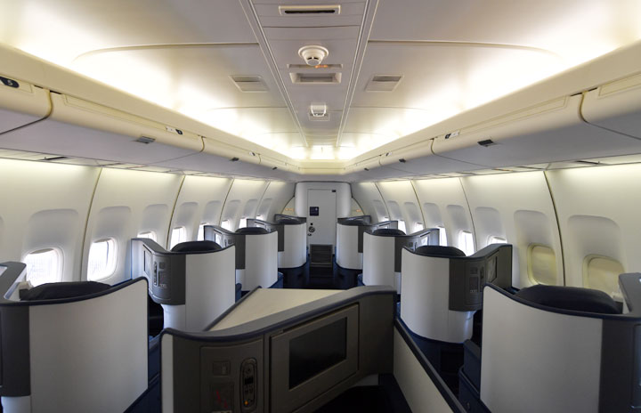 デルタの747-400初号機のメインデッキ最前方のビジネスクラス=17年3月28日 PHOTO: Tadayuki YOSHIKAWA/Aviation Wire