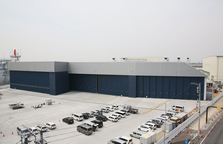 最終組立工場の向かい側に建てられたMRJの塗装工場(三菱航空機提供)