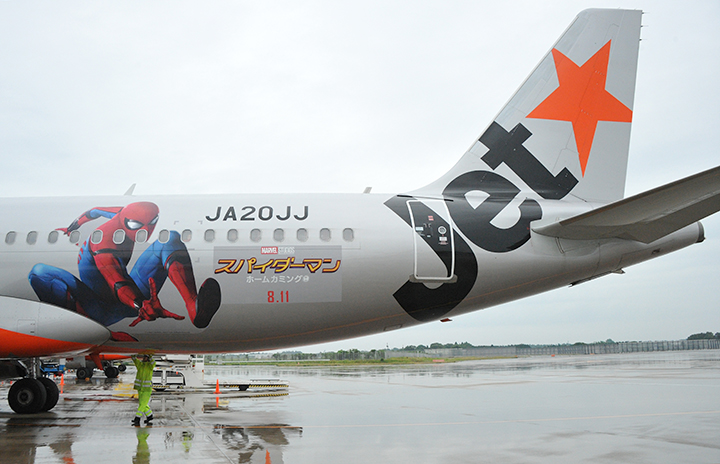 ジェットスター・ジャパンのデカール機「スパイダージェット」=17年6月21日 PHOTO: Yusuke KOHASE/Aviation Wire