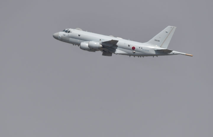 パリ航空ショー初出展を終えル・ブルジェ空港を離陸し厚木基地へ向かう海上自衛隊のP-1=17年6月22日 PHOTO: Tadayuki YOSHIKAWA/Aviation Wire