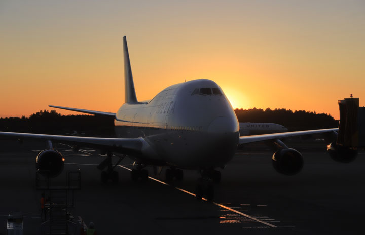成田空港に到着するデルタ航空の747-400=17年10月30日 PHOTO: Youichi KOKUBO/Aviation Wire