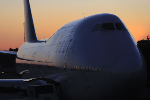 成田空港に到着したデルタ航空の747-400=17年10月30日 PHOTO: Youichi KOKUBO/Aviation Wire