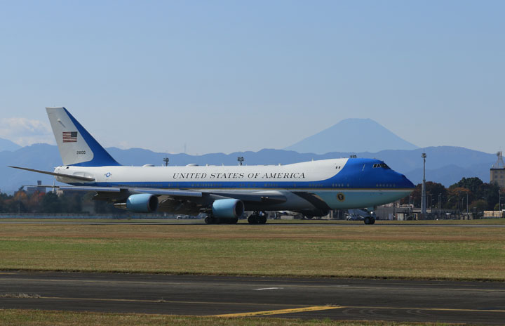 トランプ大統領を乗せ米軍横田基地に着陸する大統領専用機VC-25Aの2号機=17年11月5日 PHOTO: Youichi KOKUBO/Aviation Wire