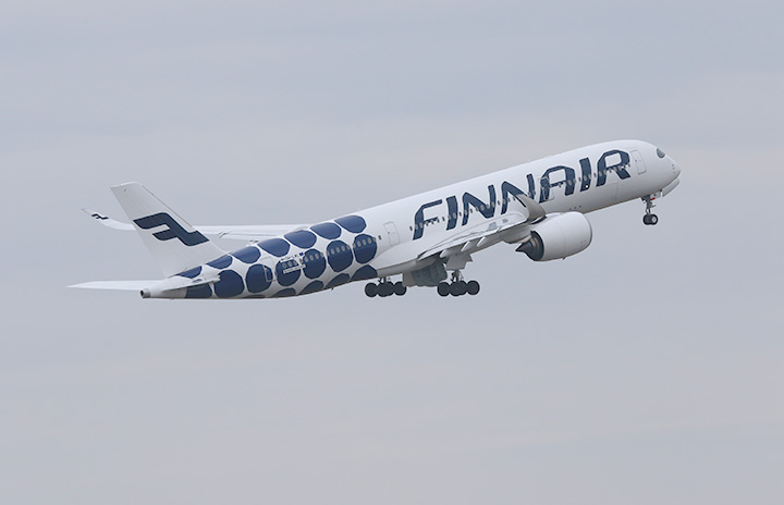 成田を離陸しヘルシンキへ向かうフィンエアーのA350マリメッコ特別塗装機=17年11月15日 PHOTO: Youichi KOKUBO/Aviation Wire