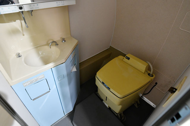 元航空自衛隊の要人輸送用YS-11のラバトリー=17年11月20日 PHOTO: Tadayuki YOSHIKAWA/Aviation Wire
