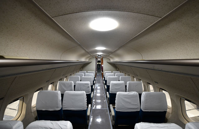 元航空自衛隊の要人輸送用YS-11のシート=17年11月20日 PHOTO: Tadayuki YOSHIKAWA/Aviation Wire