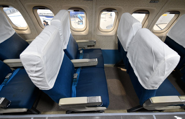 元航空自衛隊の要人輸送用YS-11のシート=17年11月20日 PHOTO: Tadayuki YOSHIKAWA/Aviation Wire