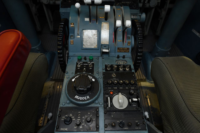 操縦桿に日航製のロゴが入った元航空自衛隊の要人輸送用YS-11のコックピット=17年11月20日 PHOTO: Tadayuki YOSHIKAWA/Aviation Wire
