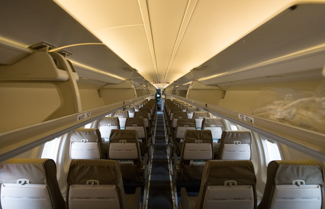 1月に全機退役するジェイエアのCRJ200の機内=17年11月26日 PHOTO: Tadayuki YOSHIKAWA/Aviation Wire
