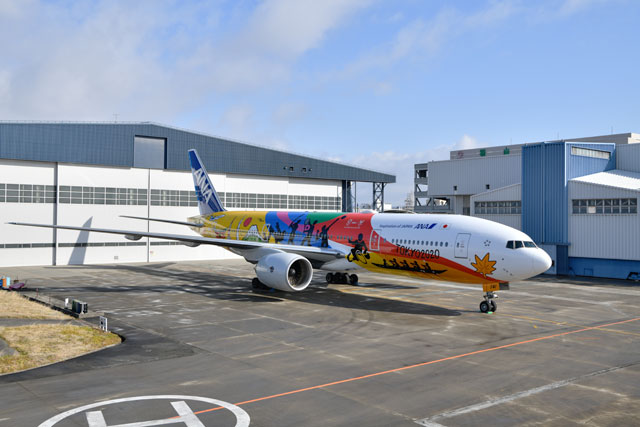 伊丹空港で塗装を終えて公開されたANAのHELLO 2020 JET=18年1月27日 PHOTO: Tadayuki YOSHIKAWA/Aviation Wire