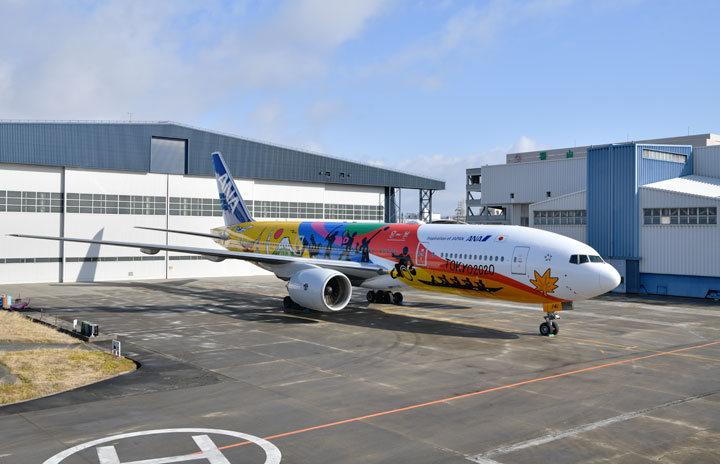 伊丹空港で塗装を終えて公開されたANAのHELLO 2020 JET=18年1月27日 PHOTO: Tadayuki YOSHIKAWA/Aviation Wire
